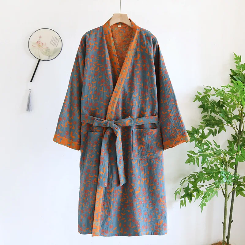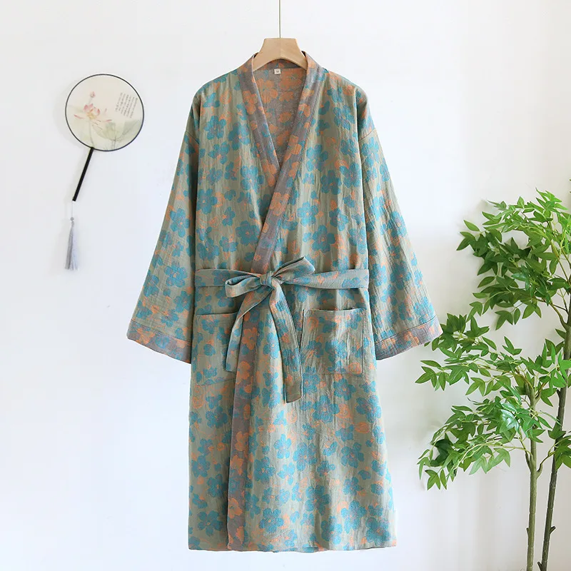 Pure Cotton Robe Women’s Pajamas 3/4 Sleeve Spring Autumn Bathrobe Female Winter Morning Loose Home Wear Sleep Wedding Dress